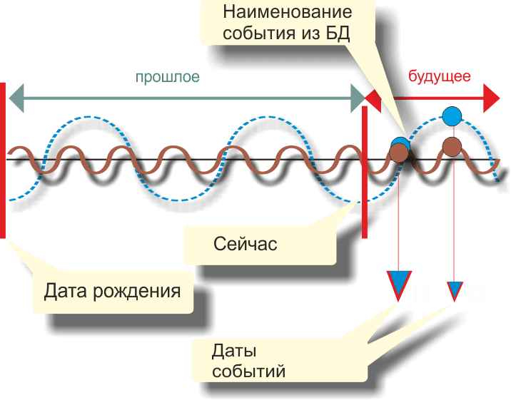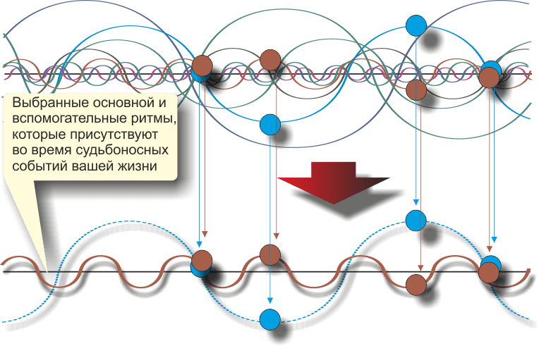 Судьбоносные события словно бусинки на ниточке прожитого времени совмещаются с графиком циклов всех Планет, выявляя взаимодействующие циклы, соответствующие времени событий. При их успешном вычислении, дальнейшее продолжение циклов в будущее, точно указывают даты и качества предстоящих событий в жизни человека. Вот почему для получения точного результата важна личная оценка каждым индивидуумом прошлых и настоящих событий своей жизни, их приоритета и важности. Отсюда становится понятна роль анкетирования, т.е. составления списка событий и их дат с хронологической связью между собой.
