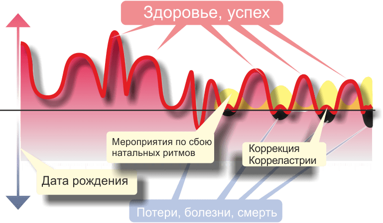 Суммируя вычисленные ритмы получаем тренд, который в материальном мире и наших ощущениях проявляется весьма реально до последних дней. В основе своей данный тренд описывает уровень энергетического потенциала человека и назван КОРРЕЛАСТРИЯ (корреляция с астралом). Корреластрия представляется в виде графика энергетического тренда во времени и удобного для интерпретации в виде прогноза для любого человека, объекта, начатого дела, планирования эффективного использования энергетического потенциала для достижения максимального результата.